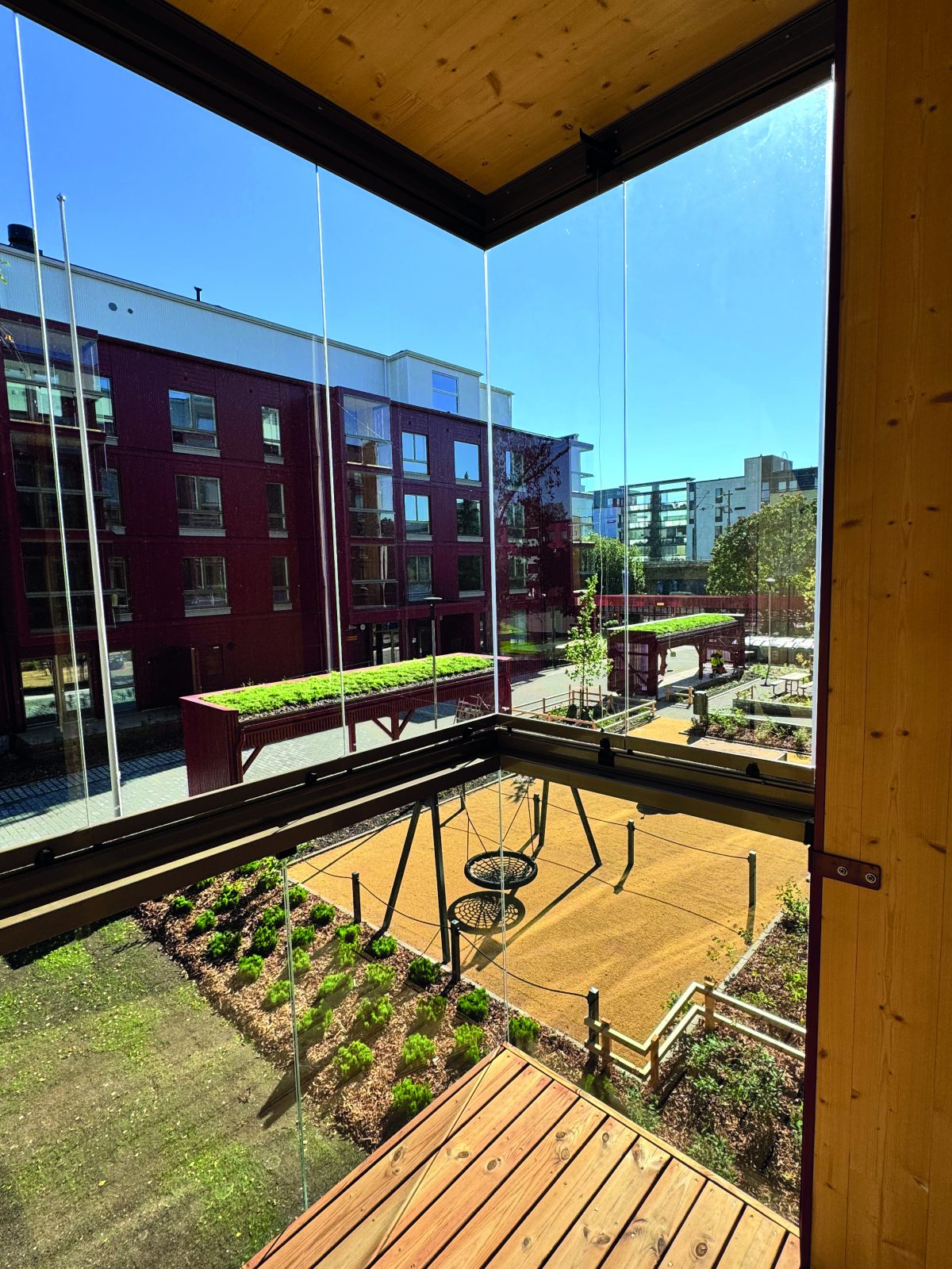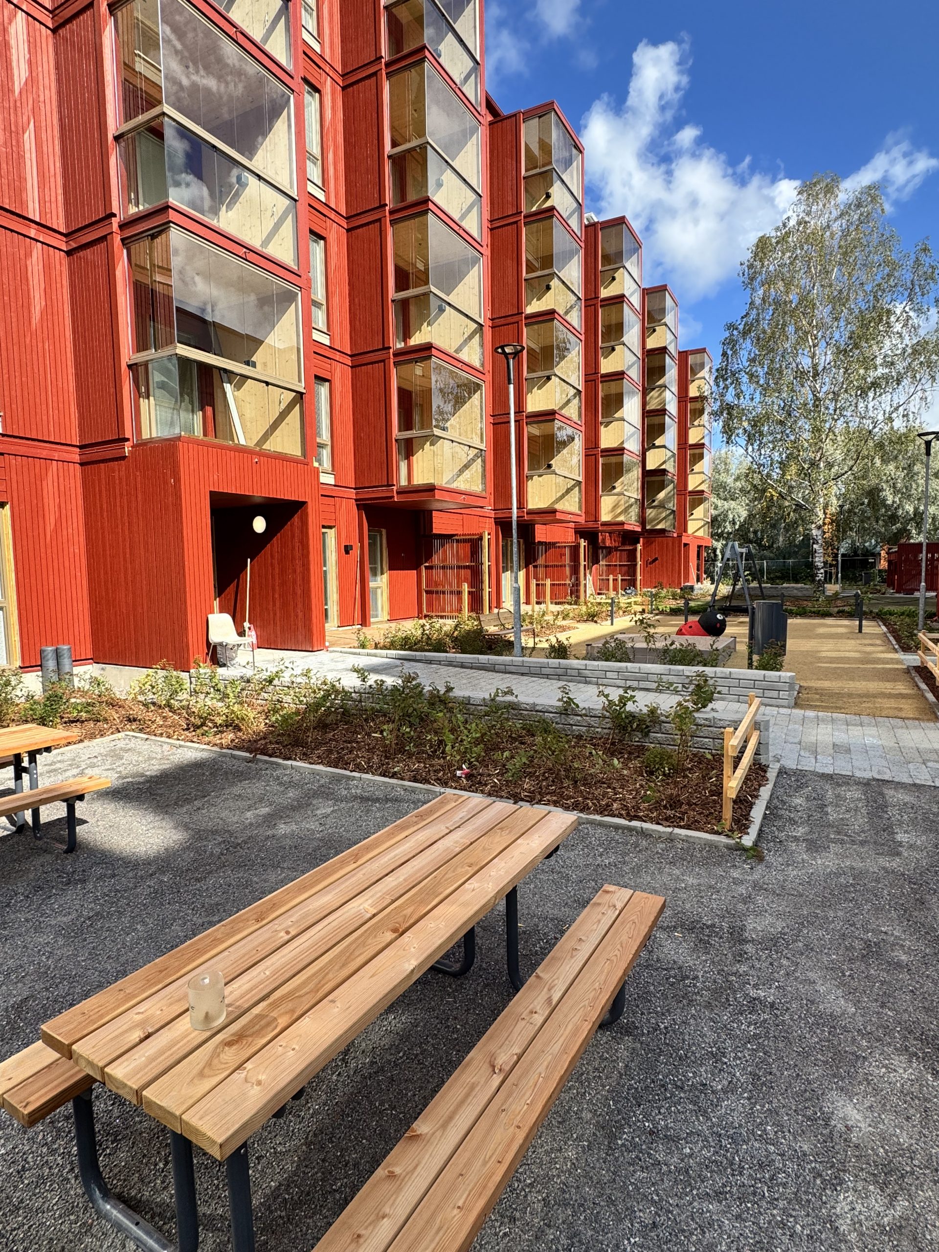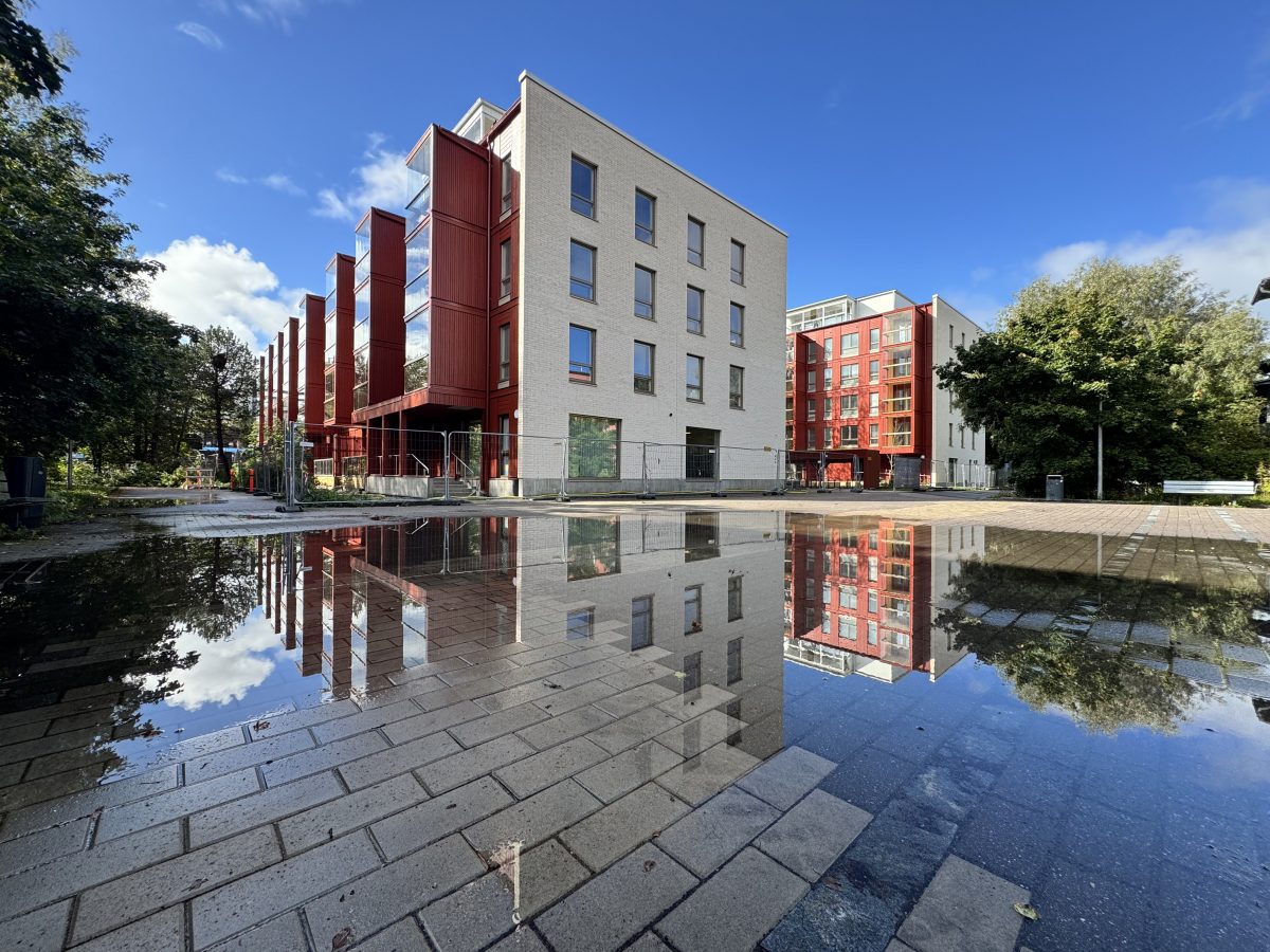 Pasuunakuja housing is a housing block of two houses in Kannelmäki, Helsinki. The houses are fitted to sit in their urban context by using similar materials and colors as their surroundings. The structures of the houses are a hybrid mix of concrete inside and timber structures on the facades and extruded balconies.